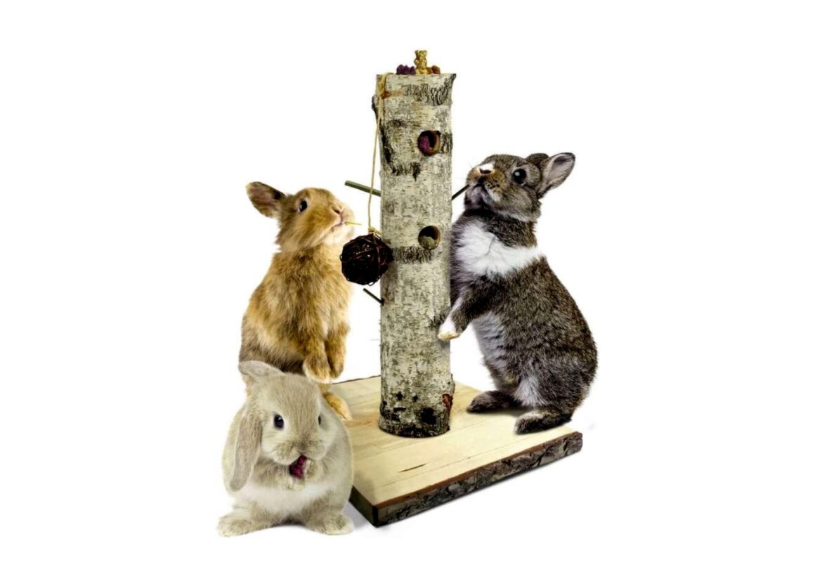 Dit leuke konijnen speelgoed houdt jouw dier actief en gaat verveling tegen. De berkenstam is voorzien van gaten die je kunt opvullen met snacks en groenten. Daarmee wakker je het natuurlijke gedrag van jouw konijn aan. Dit speelgoed werkt ook stress verlagend.
